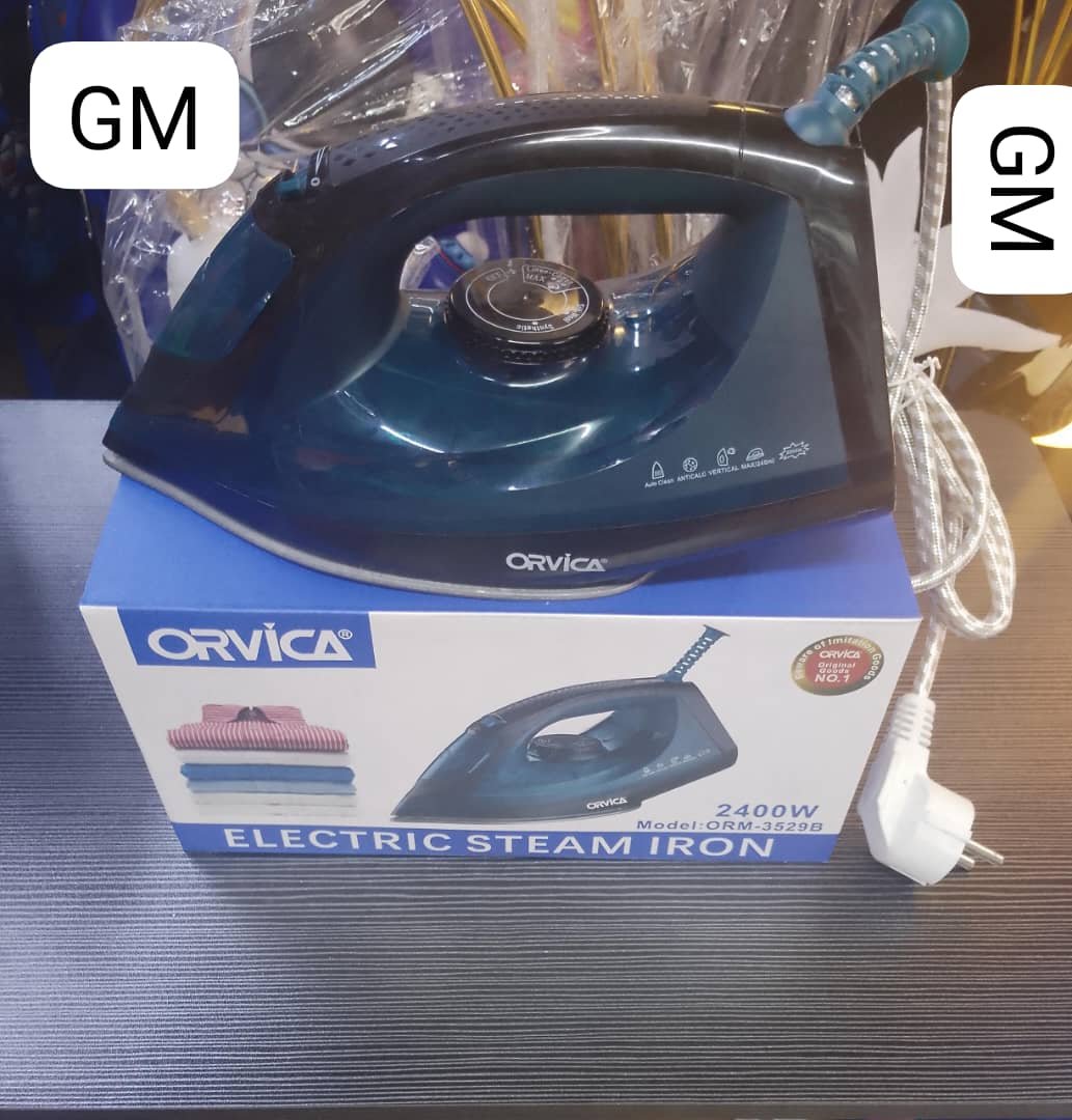 Optimisez votre session de repassage avec le Fer à Repasser Vapeur Électrique ORVICA modèle ORM-3529B. Doté d’une puissance impressionnante de 2400 Watts, il chauffe rapidement et maintient une température constante, permettant d’éliminer les plis tenaces sur tous types de tissus. Sa semelle anti-adhésive ou en céramique (selon le modèle) glisse facilement sur les vêtements pour un repassage sans effort. Ce fer est équipé de fonctions essentielles telles que la vapeur réglable, le spray et le défroissage vertical, ce dernier étant parfait pour rafraîchir les rideaux, costumes ou vêtements délicats directement sur cintre. Le design ergonomique, la poignée confortable et le cordon pivotant assurent une maniabilité optimale et une utilisation agréable.