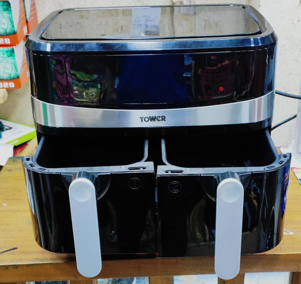 Simplifiez votre routine de cuisine avec la friteuse à air double tiroir Tower. Son design élégant et moderne, avec des finitions en noir et argent, s’adapte à toute cuisine. Grâce à ses deux tiroirs de cuisson indépendants, vous pouvez frire, rôtir ou griller vos aliments sans qu’ils ne se touchent. C’est la solution parfaite pour préparer un repas complet en une seule fois, plus sainement et sans l’utilisation excessive d’huile.