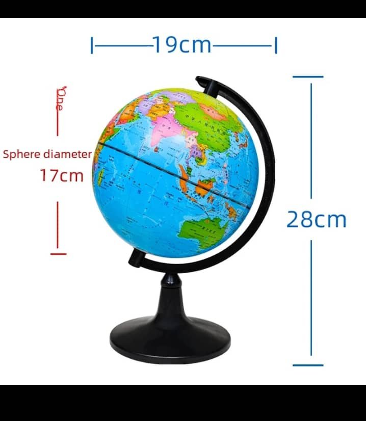 Explorez le monde depuis votre bureau avec ce globe terrestre de 17cm de diamètre. Ses couleurs vives et ses frontières clairement définies en font un excellent outil pour apprendre la géographie de manière ludique. Avec une hauteur de 28 cm et une largeur de 19 cm, il s’intègre parfaitement sur une étagère, un bureau ou dans une chambre d’enfant. C’est le cadeau parfait pour inspirer la curiosité et l’aventure.