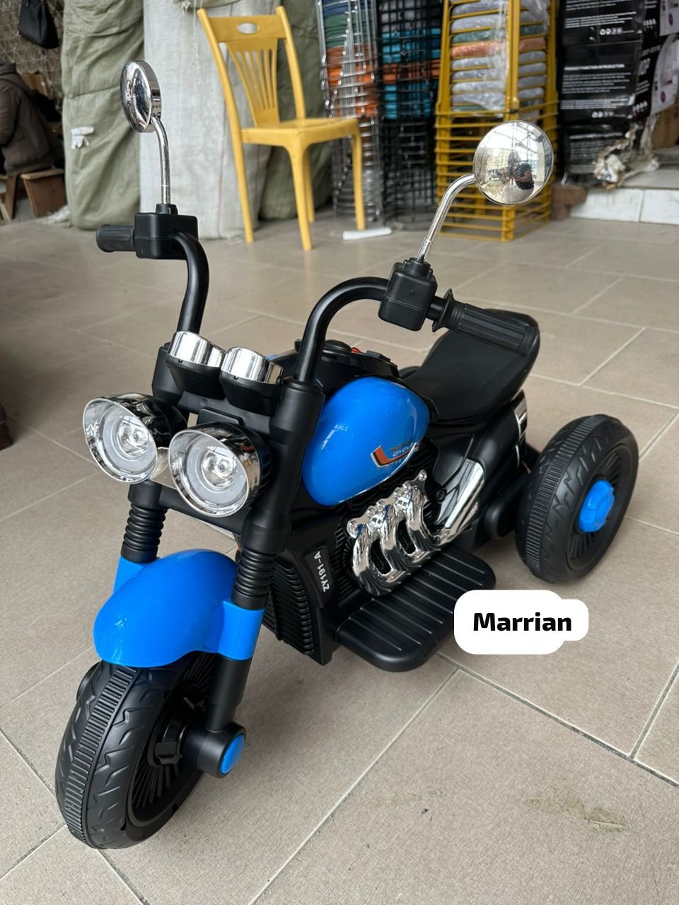Offrez à votre enfant l’expérience de la conduite avec cette moto électrique Marrian au design sportif et moderne. Ce modèle standard est conçu pour la sécurité et le plaisir des plus jeunes. Il est équipé d’un moteur à simple entraînement, alimenté par une batterie 6V 4.5A qui offre une bonne autonomie. Les trois roues stables et les pneus élargis garantissent l’équilibre, même sur des surfaces inégales. Pour une expérience de jeu encore plus immersive, la moto intègre des effets sonores et lumineux qui s’activent pendant la conduite. Le coloris bleu saphir brillant et les détails chromés en font un jouet visuellement attrayant pour tout jeune pilote.