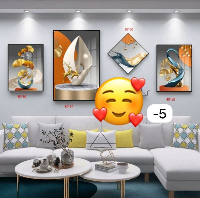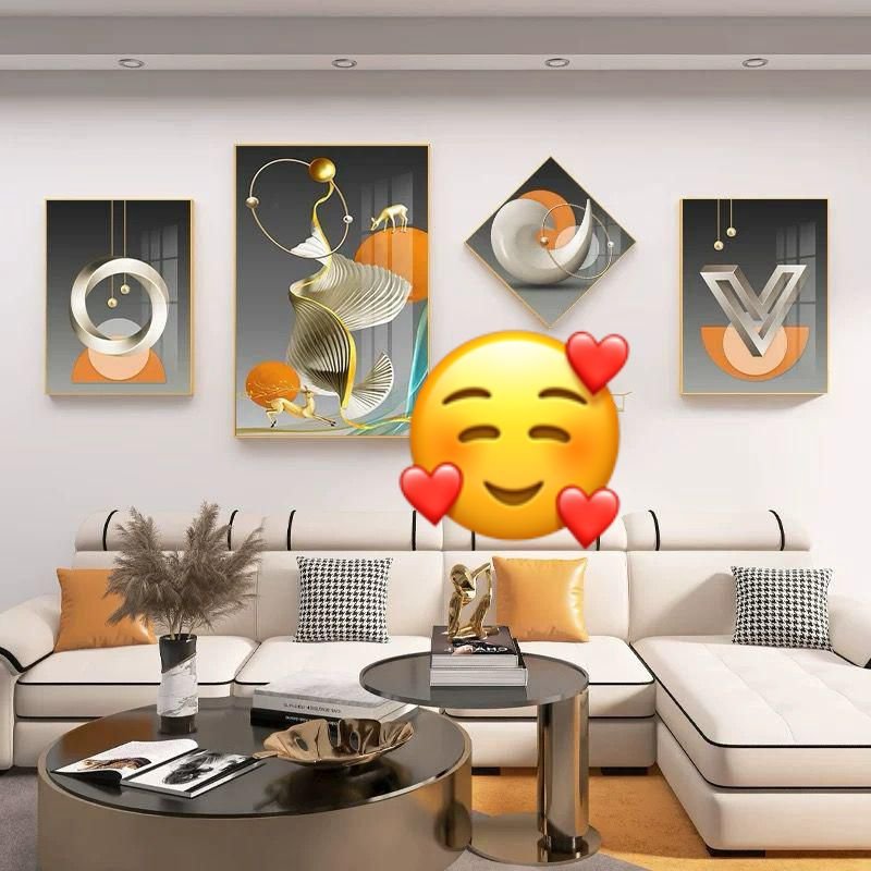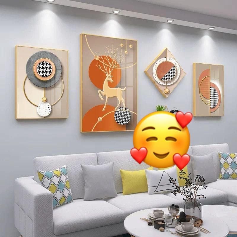 Cet ensemble de tableaux muraux est la pièce maîtresse parfaite pour votre salon, chambre ou bureau. Composé de plusieurs panneaux, il présente un design abstrait et élégant. Les couleurs chaudes comme l’orange se marient harmonieusement avec le gris et le blanc, tandis que des touches de doré et des motifs à chevrons noirs et blancs ajoutent une touche d’originalité et de modernité. Chaque tableau est soigneusement encadré, prêt à être accroché. Le mélange de formes géométriques et la représentation d’un cerf créent une composition visuelle captivante qui apporte de la personnalité et du style à n’importe quel espace.