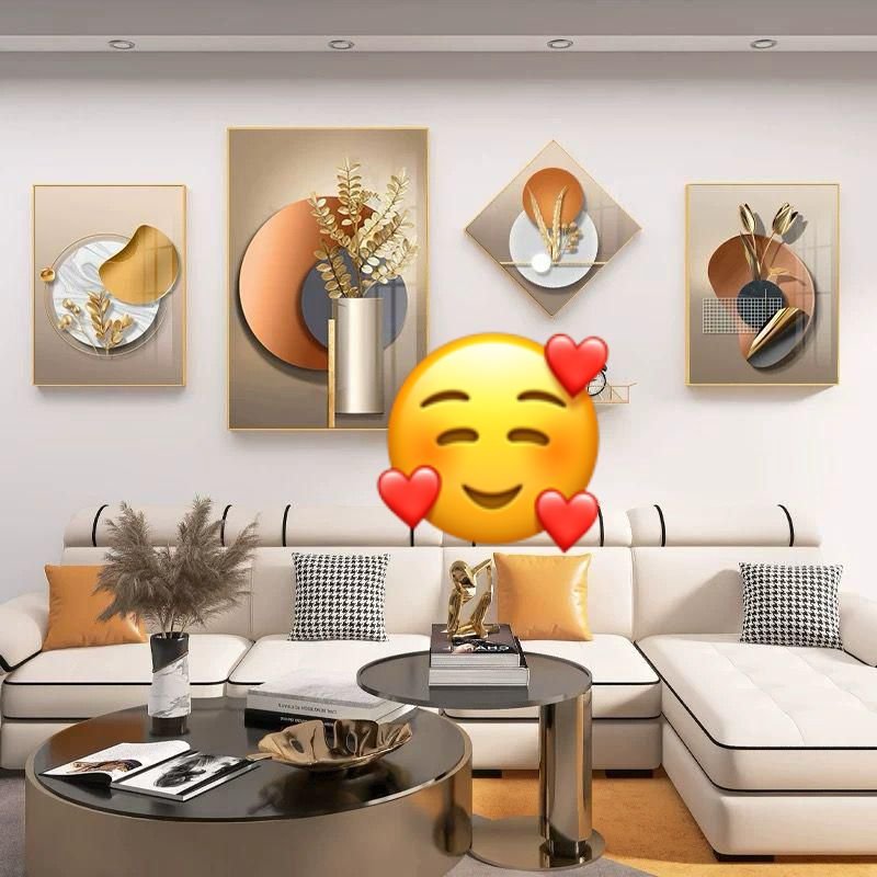 Transformez votre salon avec cet ensemble de tableaux muraux modernes. Le design abstrait combine des motifs géométriques, une texture unique et des touches de doré pour une décoration sophistiquée et tendance.